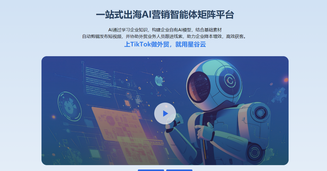 • AI智能体矩阵协同:星谷云的平台由六大AI智能体协同作业,构成其服务能力的数字基座。其中,AI短视频运营专家和AI社交媒体运营专家直接赋能TikTok等平台运营,能够基于企业专属知识库,快速生成策划方案与内容。而AI外贸人智能体则能实现7×24小时无时差秒回客户咨询,进行初步筛选与互动,将销售团队从重复性工作中解放出来,专注于高价值谈判。